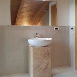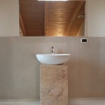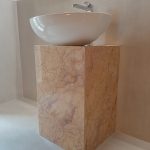 Piedistallo lavabo in lastre assemblate marmo Crema Valencia lucido – Abitazione privata Pontetaro